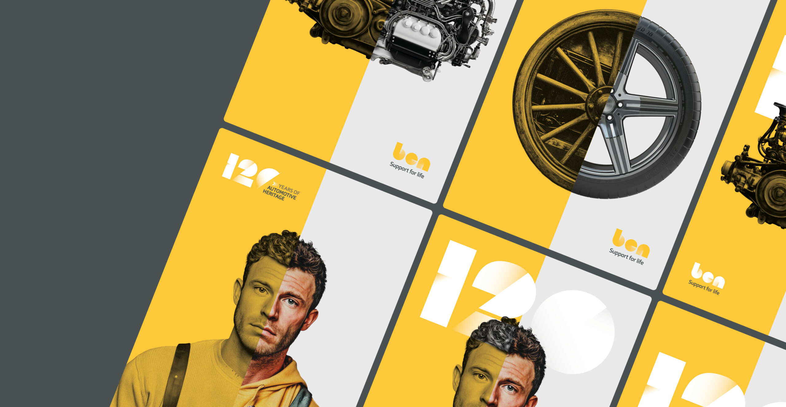 The event creative focused on Ben’s long heritage, drawing inspiration from automobile parts of the past and contrasting these with today’s equivalent, with timeline elements interweaved throughout.